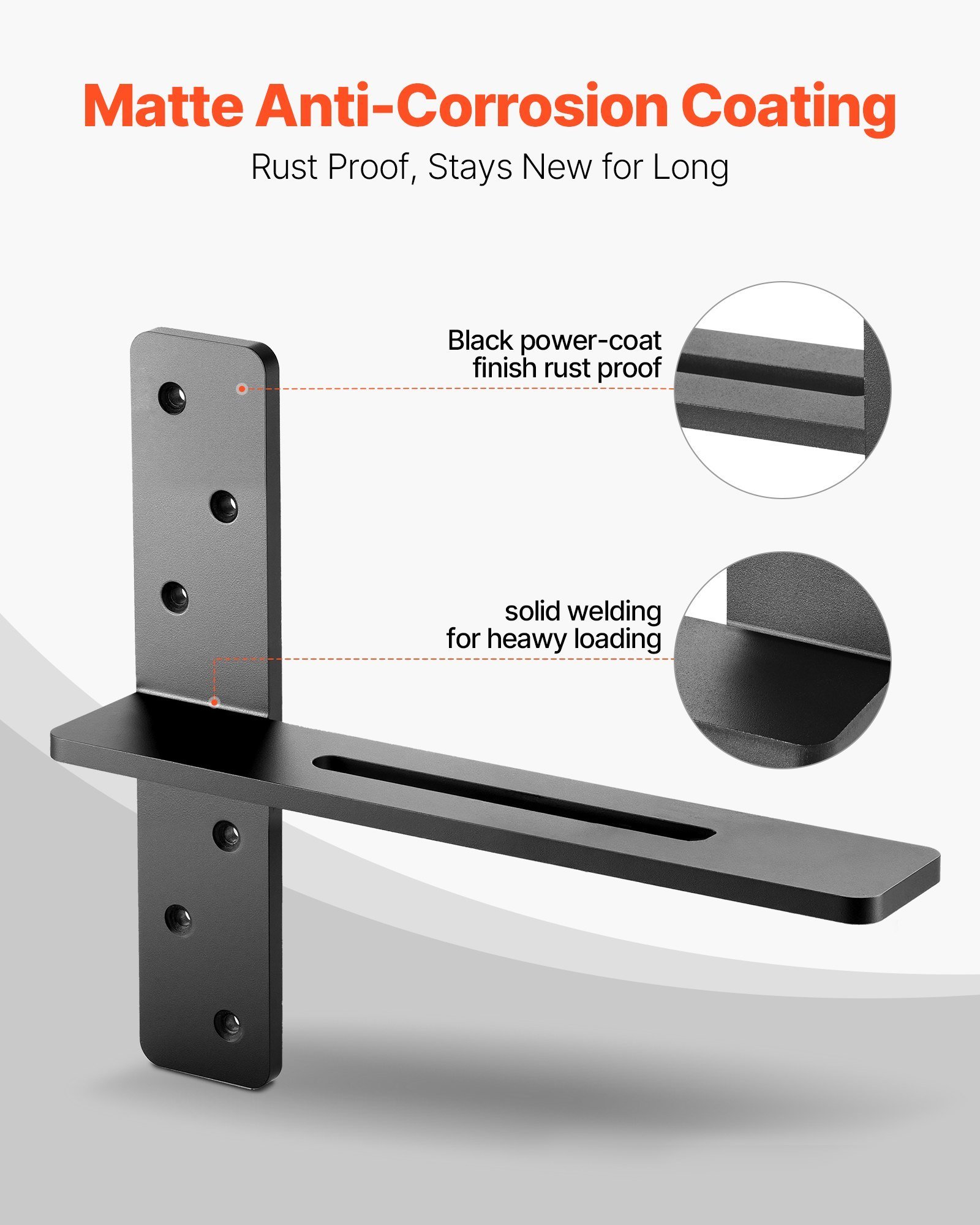 Corrosion- and Rust-Resistant: These heavy duty shelf brackets are finished with a protective anti-corrosion coating to withstand dampness and wear, maintaining a like-new appearance through long-term use