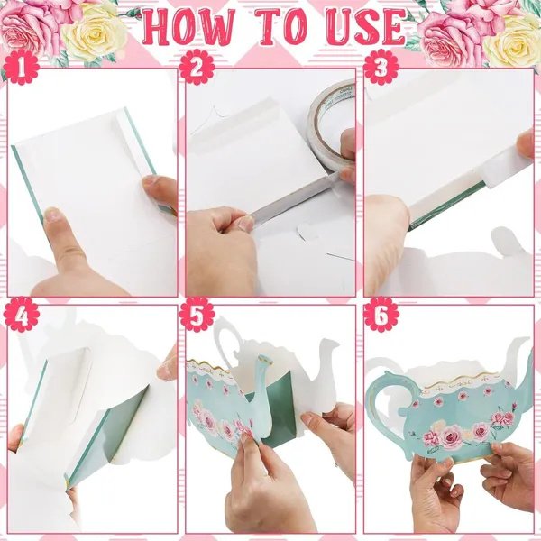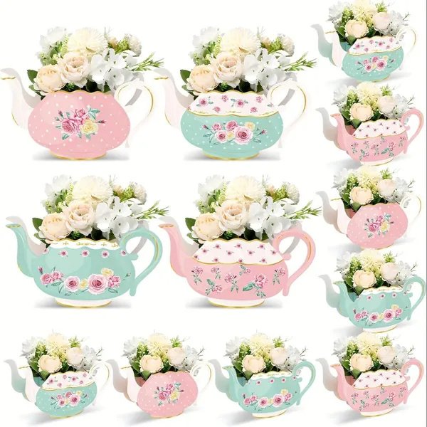 24 Pieces Tea Party Decorations Flower Boxes Spring Theme Princess Party Centerpiece Decorations 4 Style Cute Teapot Shape DIY Flower Box for Birthday Mother’s Day Wedding Shower Party Table Decor