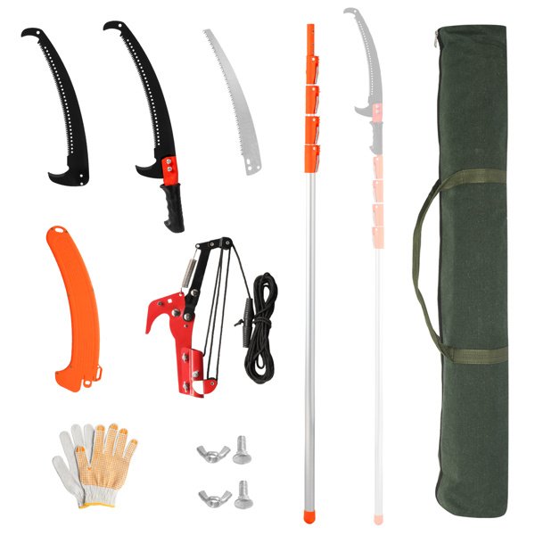 Package Includes: 1 x Saw Blade with Handle 1 x Replacement Saw Blade 1 x Saw Sleeve 1 x Pole 1 x Scissors with Pull String 1 x Gloves 1 x Canvas Storage Bag