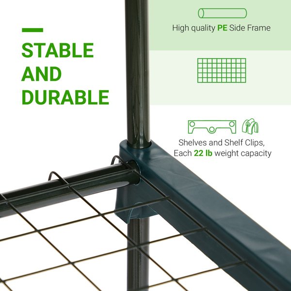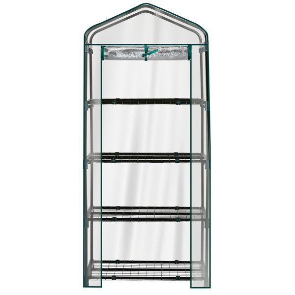 27X19X62in PE Cloth Flower Room Transparent PVC Dark Green Iron Pipe Spire Mini With 4 Ply Grid Flower Stand With Zipper Rolling Door
