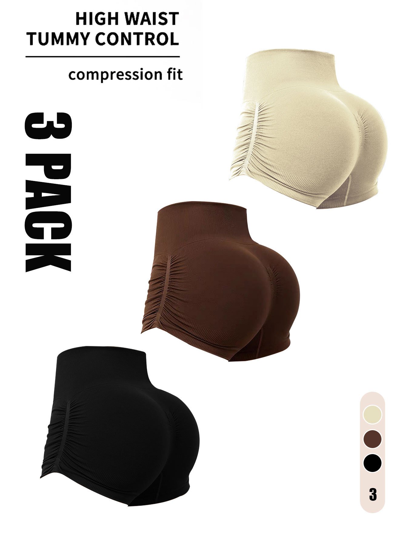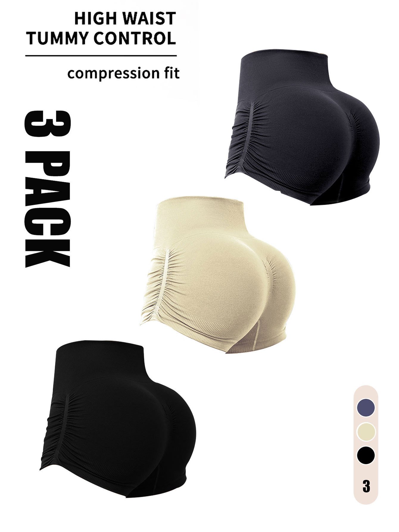 3 Pack Workout Shorts For Women Seamless Scrunch Butt Lifting High Waisted Yoga Gym Booty Running Short Pants