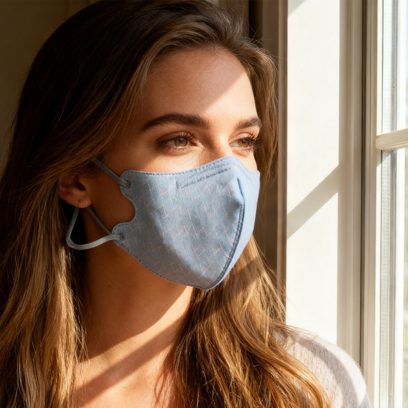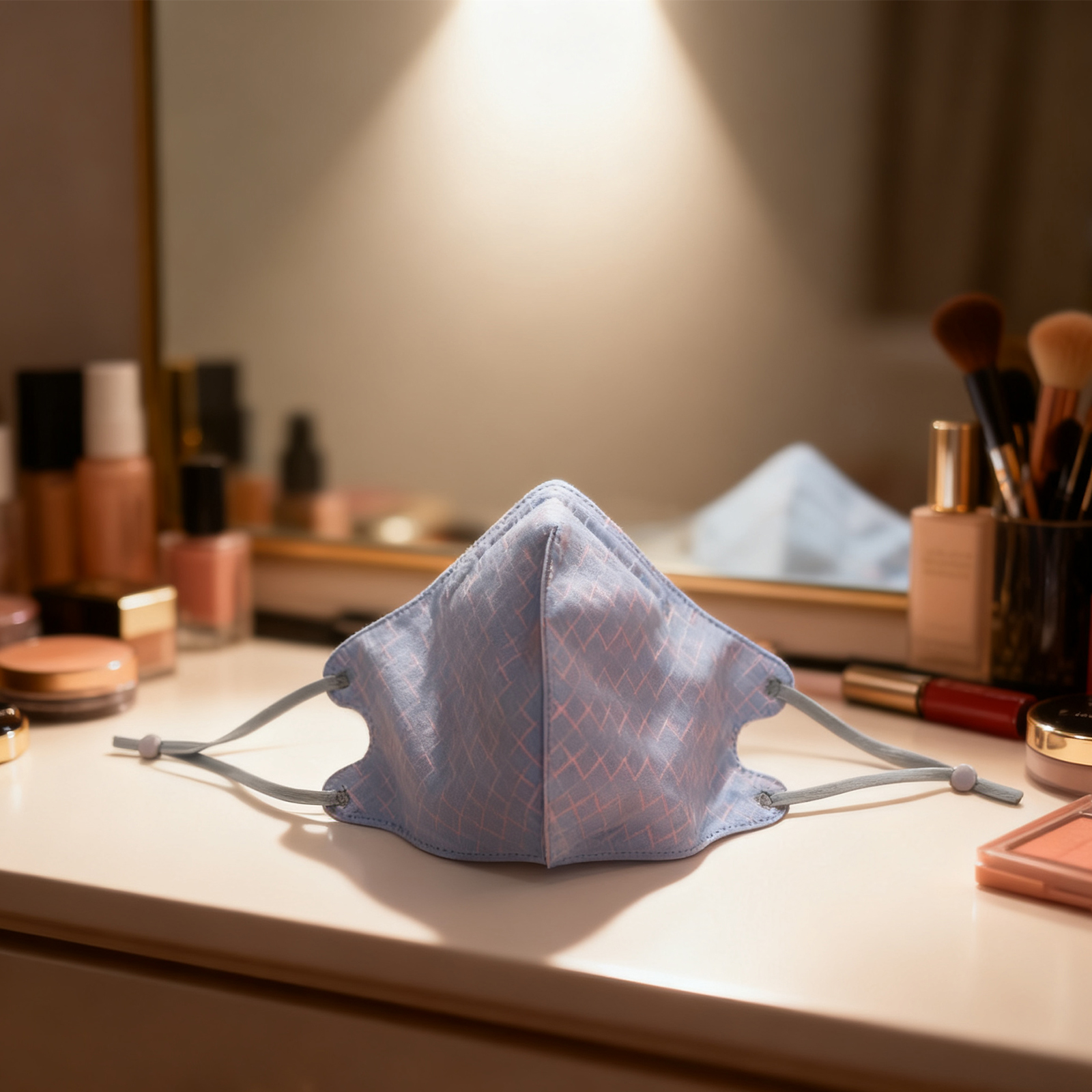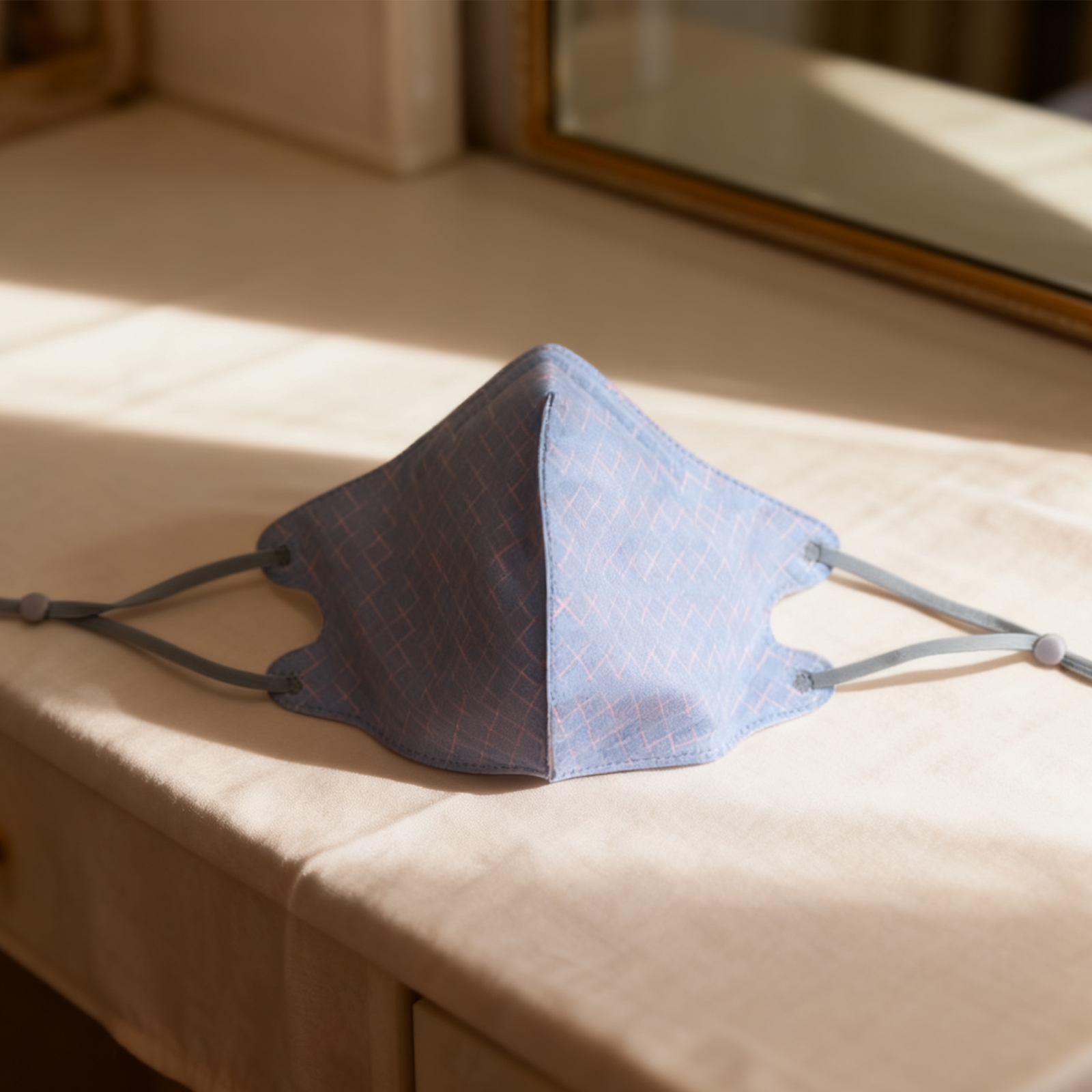 Tags: 3D mask, accessory, blue mask, fashion mask, houndstooth mask