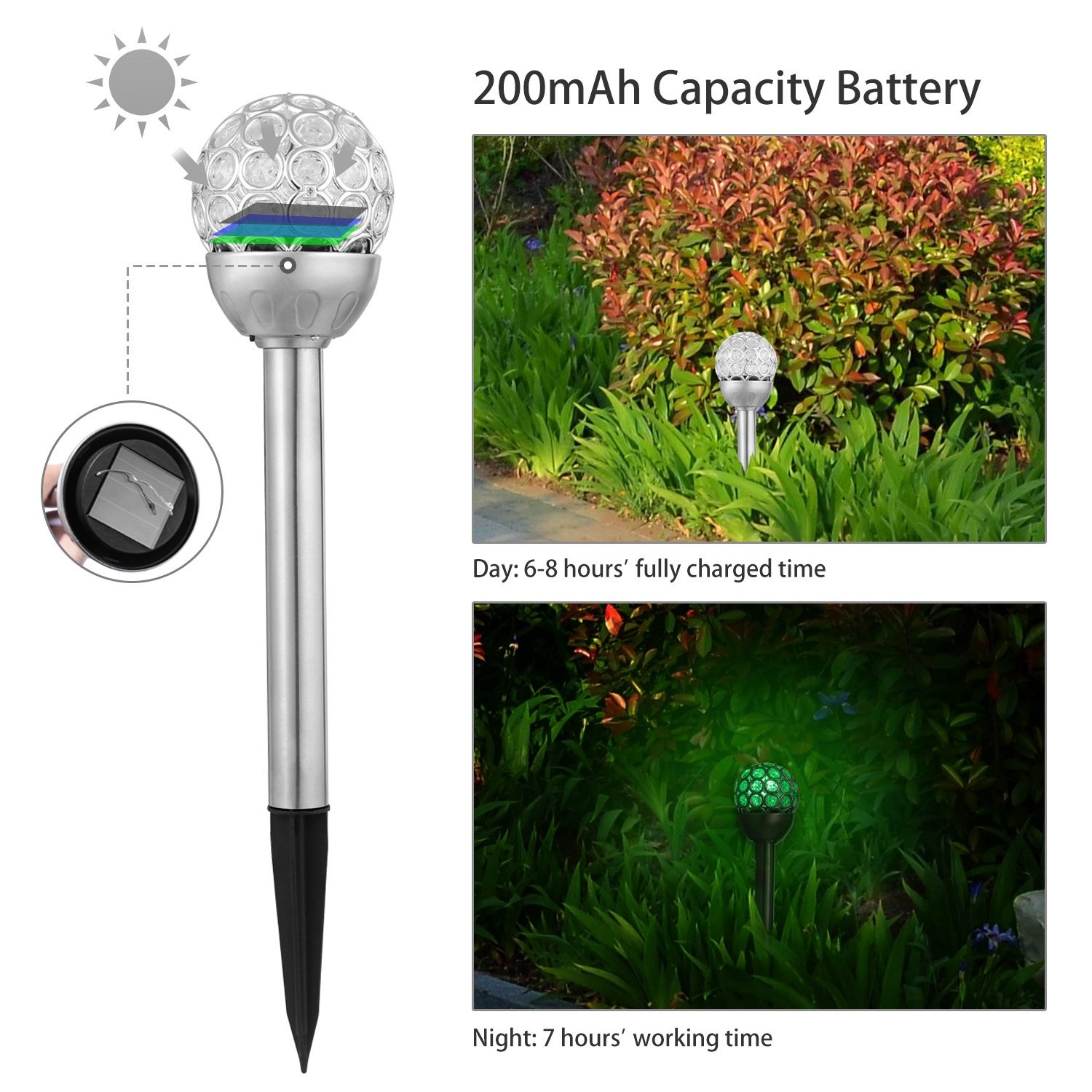 - * Durable Stainless Steel Material and Classic Outlook *: Our solar garden light adopts stainless steel material and ABS spike shell thus durable,anti-oxidation and free from color fading. Its classic appearance decorates your garden.