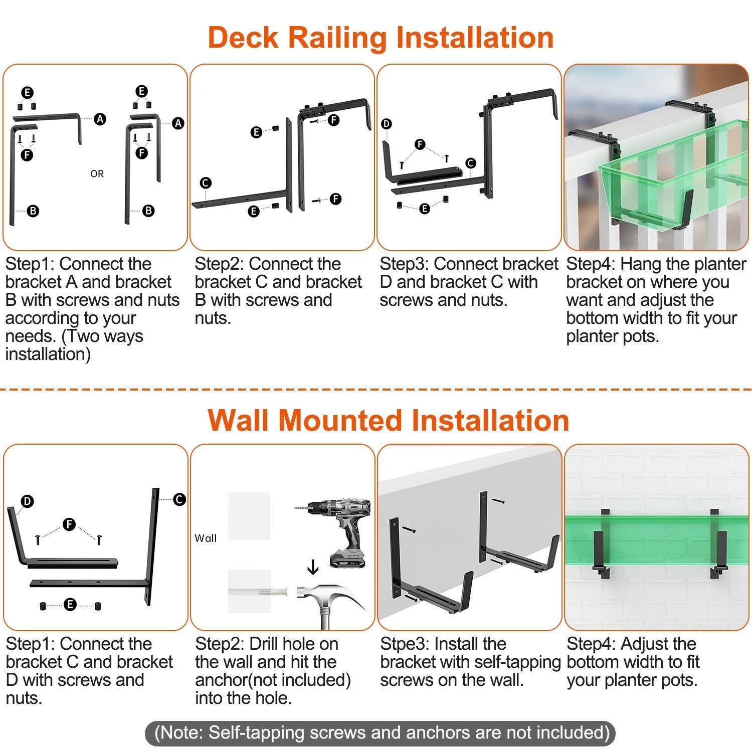 *Easy To Install*:Comes with 4 sets of iron brackets accessories and total 24Pcs screws & nuts and one screwdriver,you can assemble the Flower Box Bracket easily and quickly. No other tools needed.