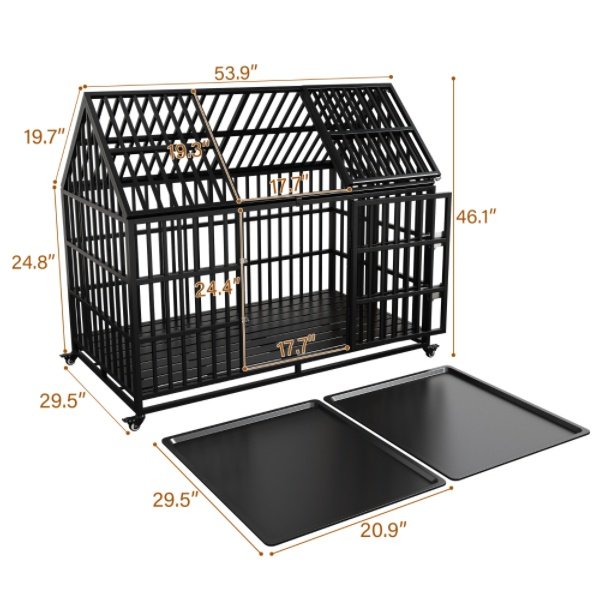 Product Name54″ Heavy Duty Dog Crate Large Dog cage Strong Metal Dog Kennels and Crates for Large Dogs Top Open with 2 Doors 4 Lockable Wheels 2 Removable Trays