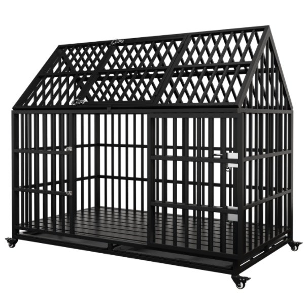 • Pointed Roof & Top Door: The pointed roof design of this large indoor dog kennel provides extra height, expands living area, suitable for large dogs. The top door allows you to interact or check or feed your pet easily, good for high anxiety dogs.
