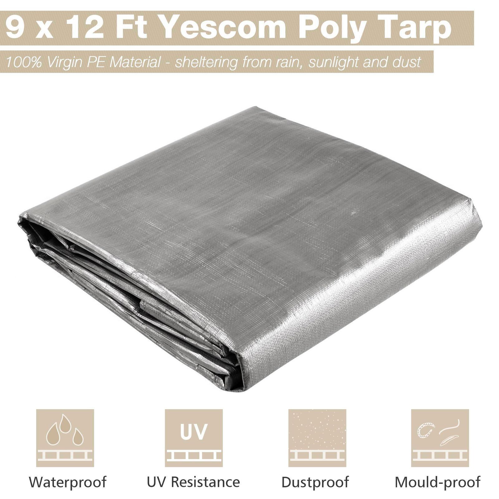– Strong & Durable Shelter – 9 x 12 ft silver and black poly tarp forms a strong and durable shelter from sunlight, rain and dust, cooler underneath in the summer; Long lifetime up to 3 years, it features good ability of anti-aging for long-time use