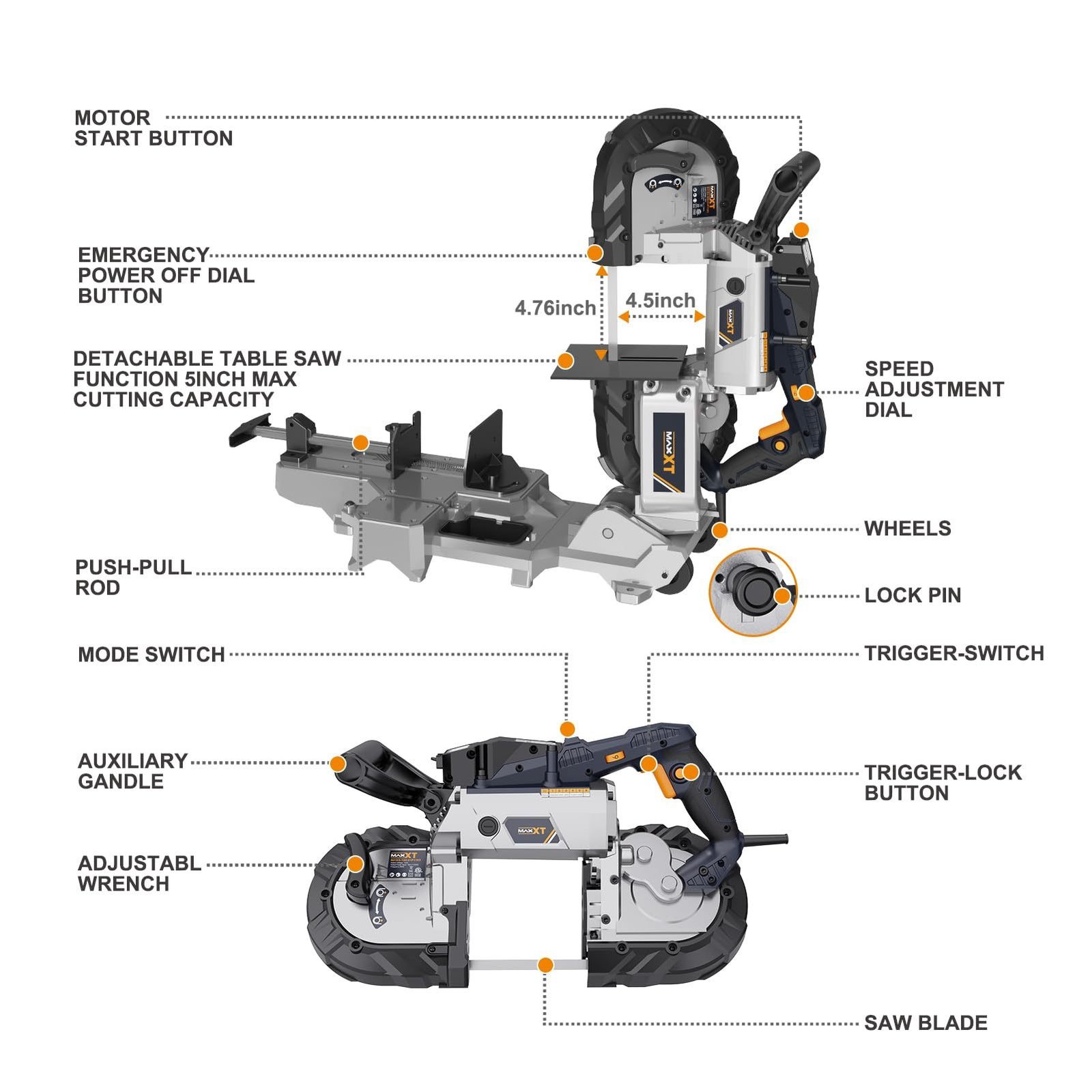 - The self-locking switch prevents accidental activation, making it safer to use. The tool-free saw blade change lever allows for easy and quick blade changes, minimizing downtime and maximizing efficiency