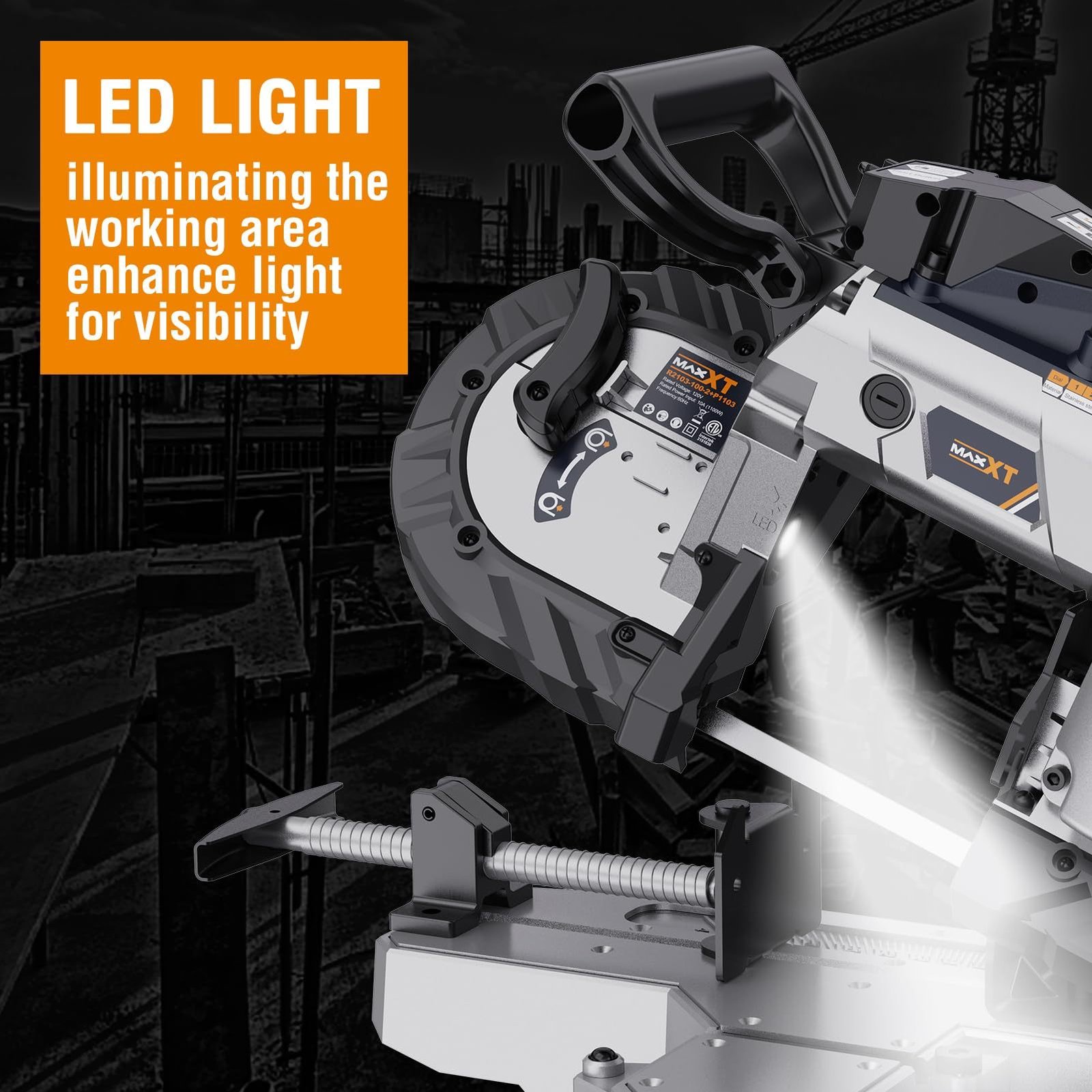 - 【Powerful 10 amp motor for High Performance】Experience the unbeatable power of our 10 amp motor that ensures exceptional performance without the risk of burnout. Band saw for cutting metal Cut through steel effortlessly, leaving behind smooth, burr-free kerfs, and without any burns. Our tool operates with low noise levels and offers adjustable cutting angles from 0 to 45 degrees.