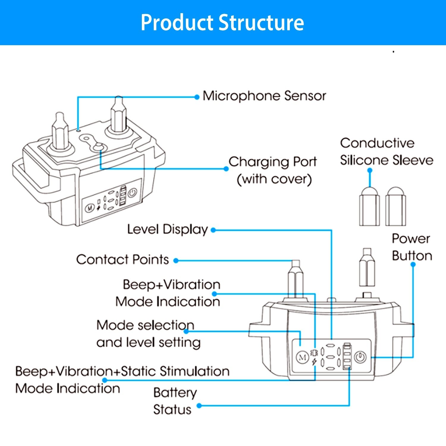 - * Dual Training Modes *: Barking collar has beep,vibrate and static training modes to help your dog correct uncontrolled barking and develop better behavior;static stimulating mode is optional,you can customized this bark collar as a dog static shock bark collar or no static shock bark collar. Strong and powerful motor,also the static stimulating function conforms to ECMA form.