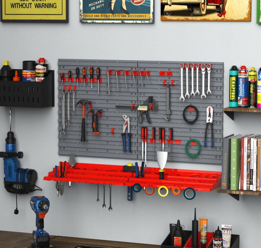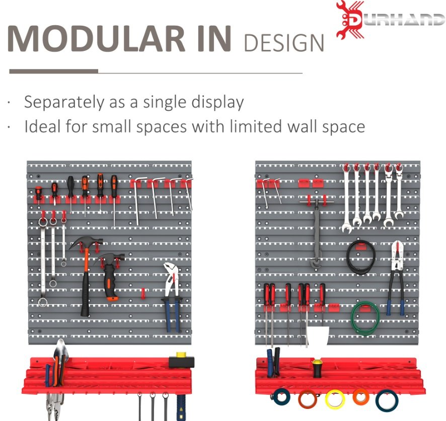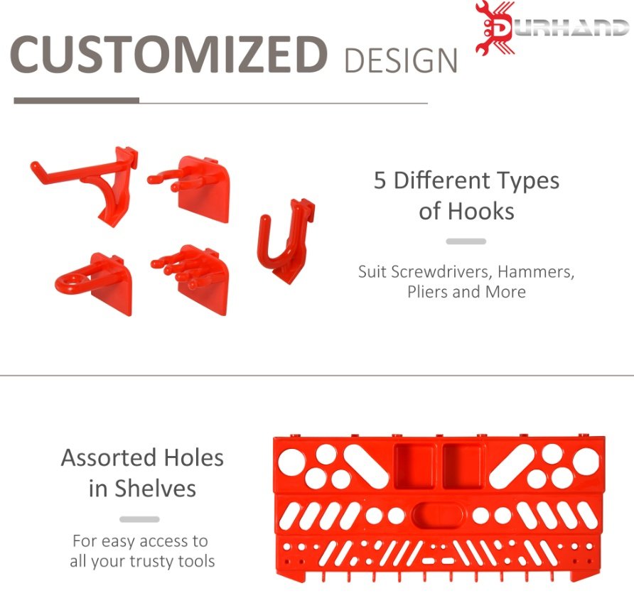 DURHAND Tool Organizer Wall Mounted With 54 Piece Pegboard And Shelf 50 Hooks, DIY Garage Storage With Strong Loading Capacity