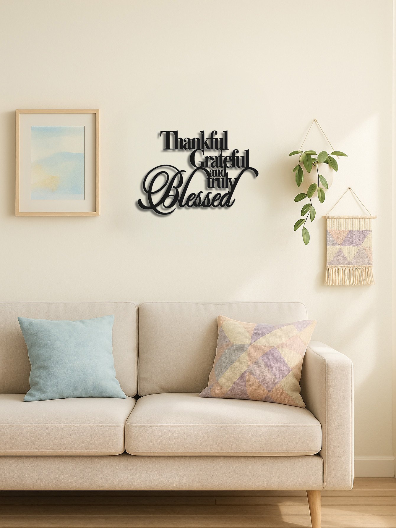 Elegant Thankful Grateful Blessed Metal Art -Wall Decor For Home Office Bedroom
