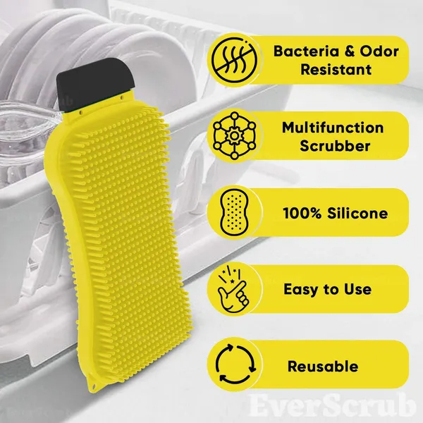 “Tired of scrubbing endlessly with sponges that quickly wear out? Introducing the EverScrub Silicone Sponge, the ultimate 3-in-1 cleaning solution for your kitchen! With its innovative design, this 2-pack set comes with a scrapper and two types of bristles, allowing you to tackle both tough grime and delicate surfaces with ease.