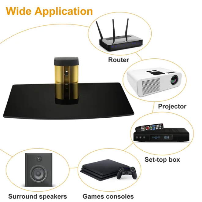 Floating Wall Mounted Strengthened Tempered Glass Shelf