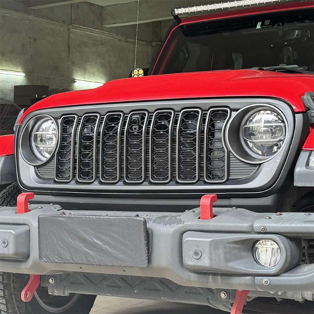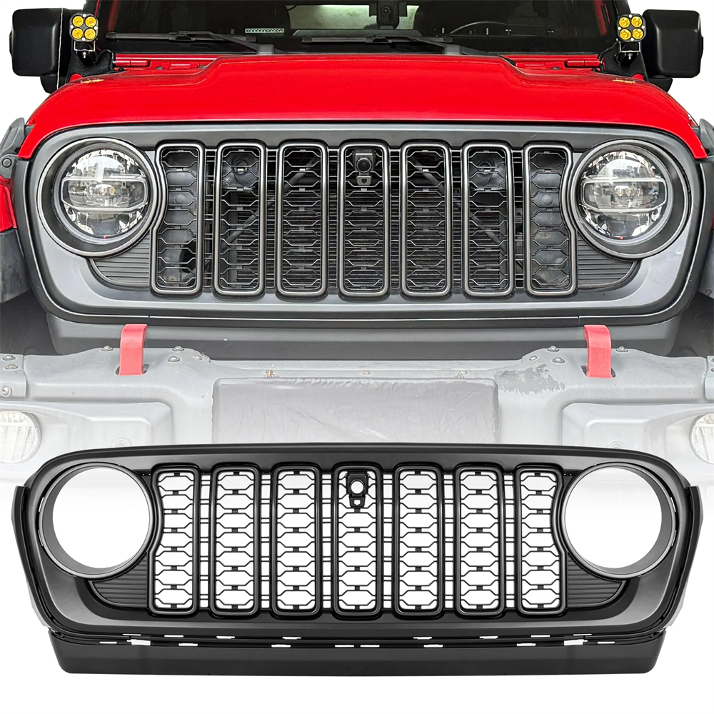 - Made from high-quality plastic, our Front Bumper Mesh Grille is corrosion-resistant and built to last, ensuring long-lasting durability.Fit for 2018-2024 Jeep Wrangler JL/JT grille with Camera Hole