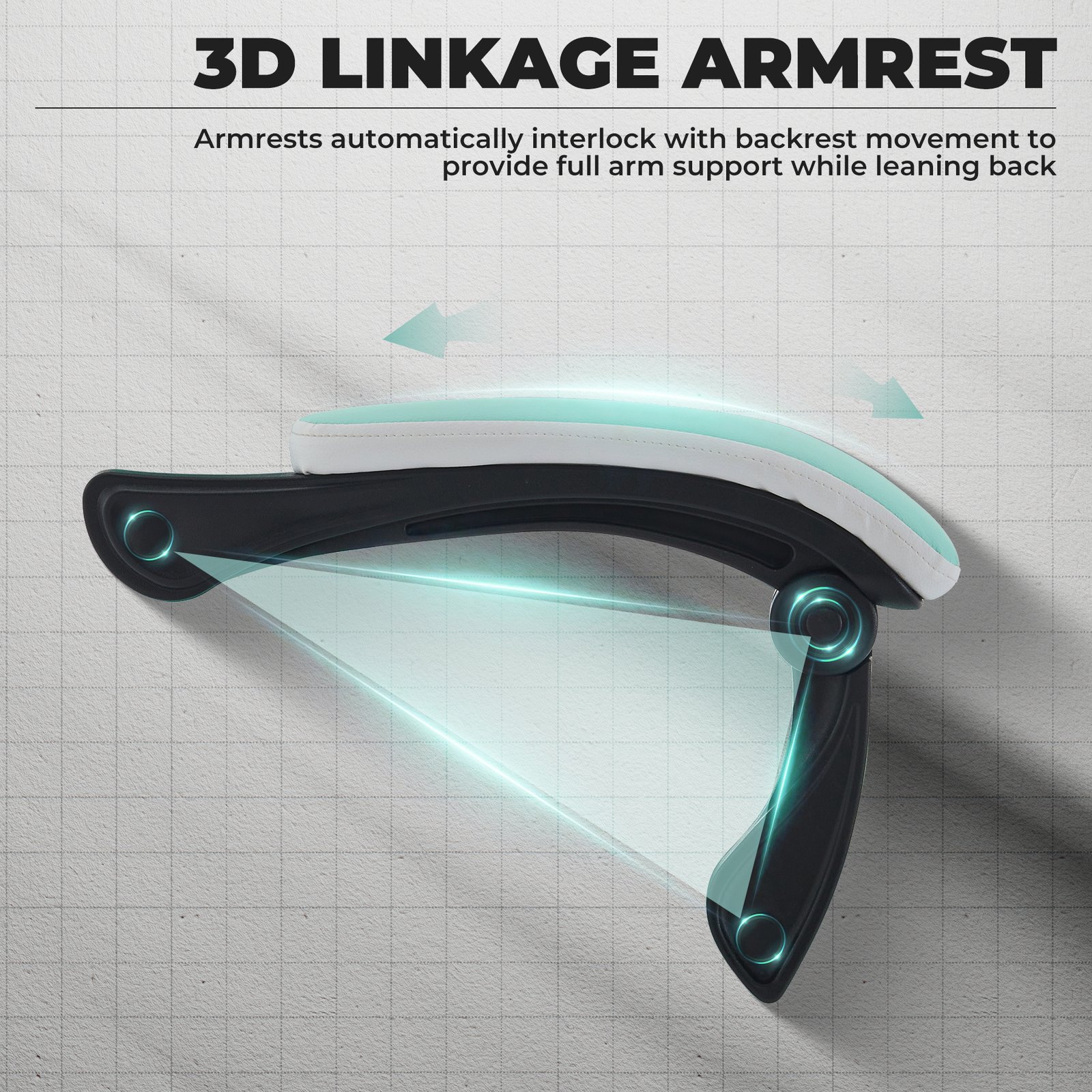 - Upgrade The Linkage Armrest: The game chair uses a 3D linkage armrest design. The armrest is linked to the tilt Angle of the back of the chair. As the back reclines, the armrest is adjusted in sync to ensure full support for the arm at any Angle. This design enhances comfort and greatly improves convenience when using, making the posture more natural and relaxed when playing or working