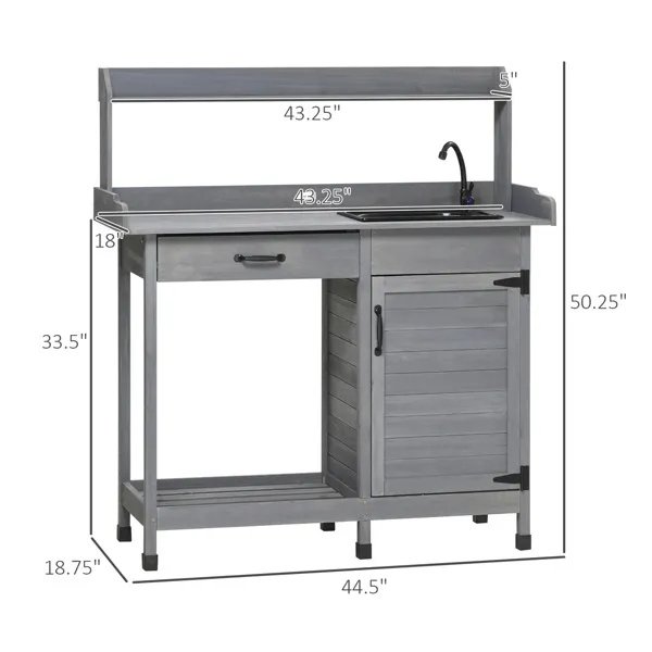 ● Removable Sink: Features an outdoor sink station with a hose hook up. There is an inlet to connect to a water source and a basin that drains. Our potting bench allows you to water potted plants in the same place where you add soil.