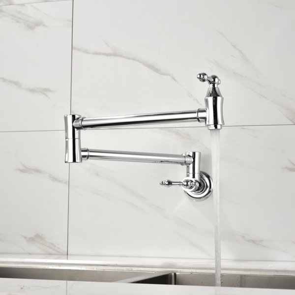 Wall Mount Pot Filler Kitchen Faucet offers the most aesthetic and hygienic faucet available. Dual shut-off on the Pot Filler faucet allows you to turn the water off at either the wall or the spout, controlling the water flow at the point of use. Dual swing joints allow the pot filler to easily fold away when not in use and with the simple on and off with a quarter turn of the handle.