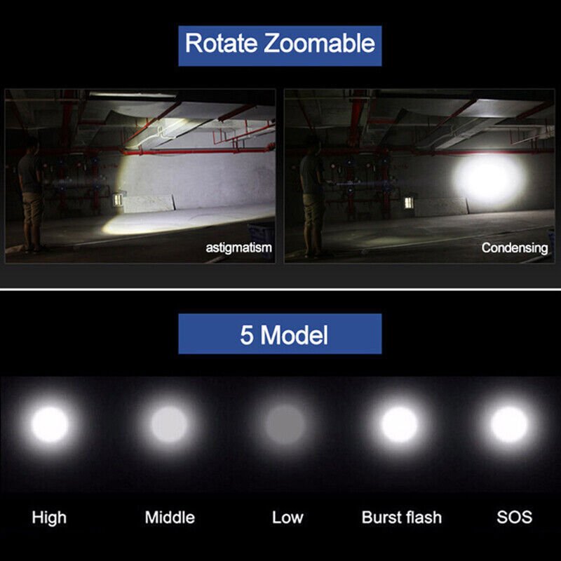LED Tactical Flashlight Rechargeable LED Work Light Super Bright Torch Emergency Light Escape Hammer