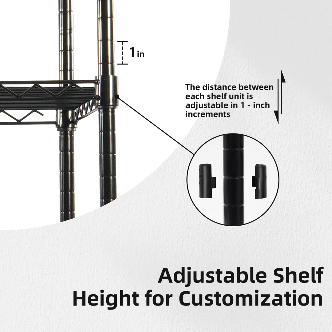- MULTIFUNCTIONAL AND SPACE SAVING: Our storage shelves are versatile for any room in your home, from organizing your laundry room to maximizing closet space. The sleek design blends seamlessly with any decor, making it a versatile addition to your storage solution. Whether you need pantry shelving or an efficient way to manage office supplies, this wire shelf is your go-to solution for clutter-free living.