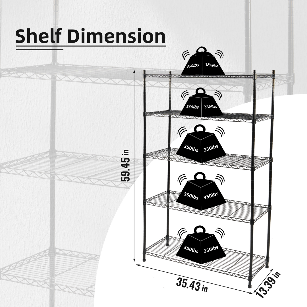 –Only Self Pickup–5-Tier Storage Rack, Adjustable Wire Shelving Unit With Leveling Feet, Heavy Duty Storage Rack, Black
