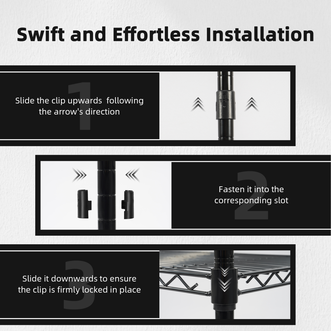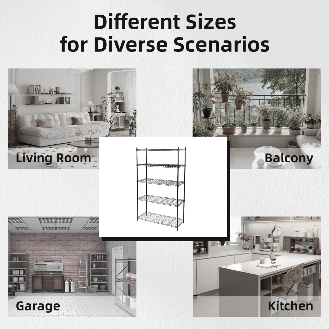 - MULTIFUNCTIONAL AND SPACE SAVING: Our storage shelves are versatile for any room in your home, from organizing your laundry room to maximizing closet space. The sleek design blends seamlessly with any decor, making it a versatile addition to your storage solution. Whether you need pantry shelving or an efficient way to manage office supplies, this wire shelf is your go-to solution for clutter-free living.