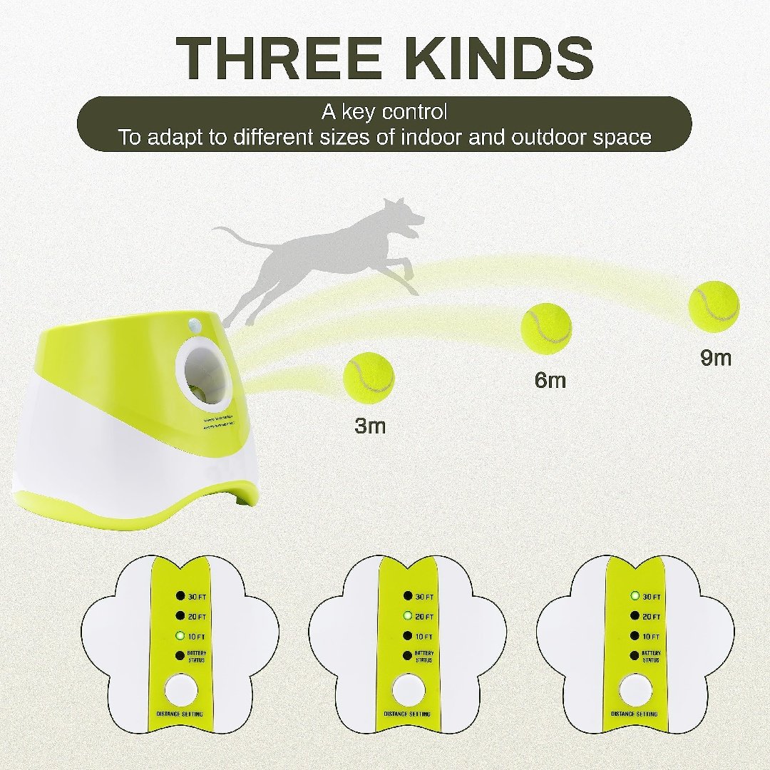 - 【Three Ranges Mode】The automatic dog ball launcher has three modes, which can achieve different distances to throw, giving your pet a different game experience.