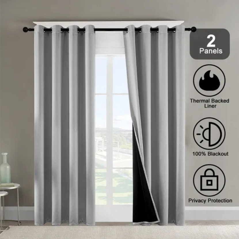 indoor blackout curtains are made of polyester fiber, which can block 95{f8951bb040699499d8a073318de34772c095ae6a6ba1b016f899a2e28d781563} of sunlight and ultraviolet rays. Thermal backed liner can bring blackout effect that the ordinary curtain can not be compared to. The darker the color of the fabric, the more light it can block. Our curtain panels used in the living room can not only isolate the heat in summer and the cold in winter, but also reduce external noise, thereby saving energy costs.