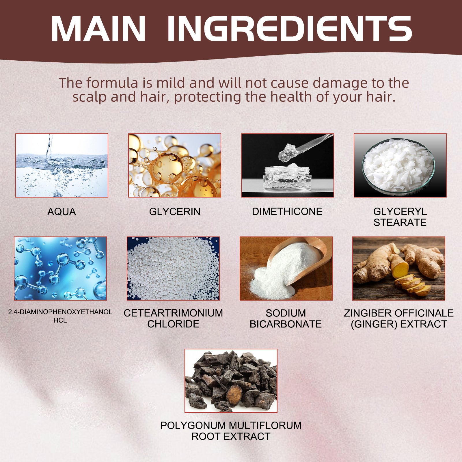 Our Polygonum multiflorum hair wax comb contains sodium bicarbonate, ginger extract and Polygonum multiflorum root extract. It nourishes and protects the hair, improves the health of hair follicles, promotes hair growth, moisturizes the roots, brightens the hair, covers your white hair, and gives you glossy black hair. The way to use it is simple: clean and dry your hair, wait a few minutes for your hair to dry before dyeing, then use the product to comb the hair dye evenly into your hair, and rinse with water to rinse off excess hair dye. It can deeply nourish hair roots, effectively control oil, and make hair look more fluffy and shiny.