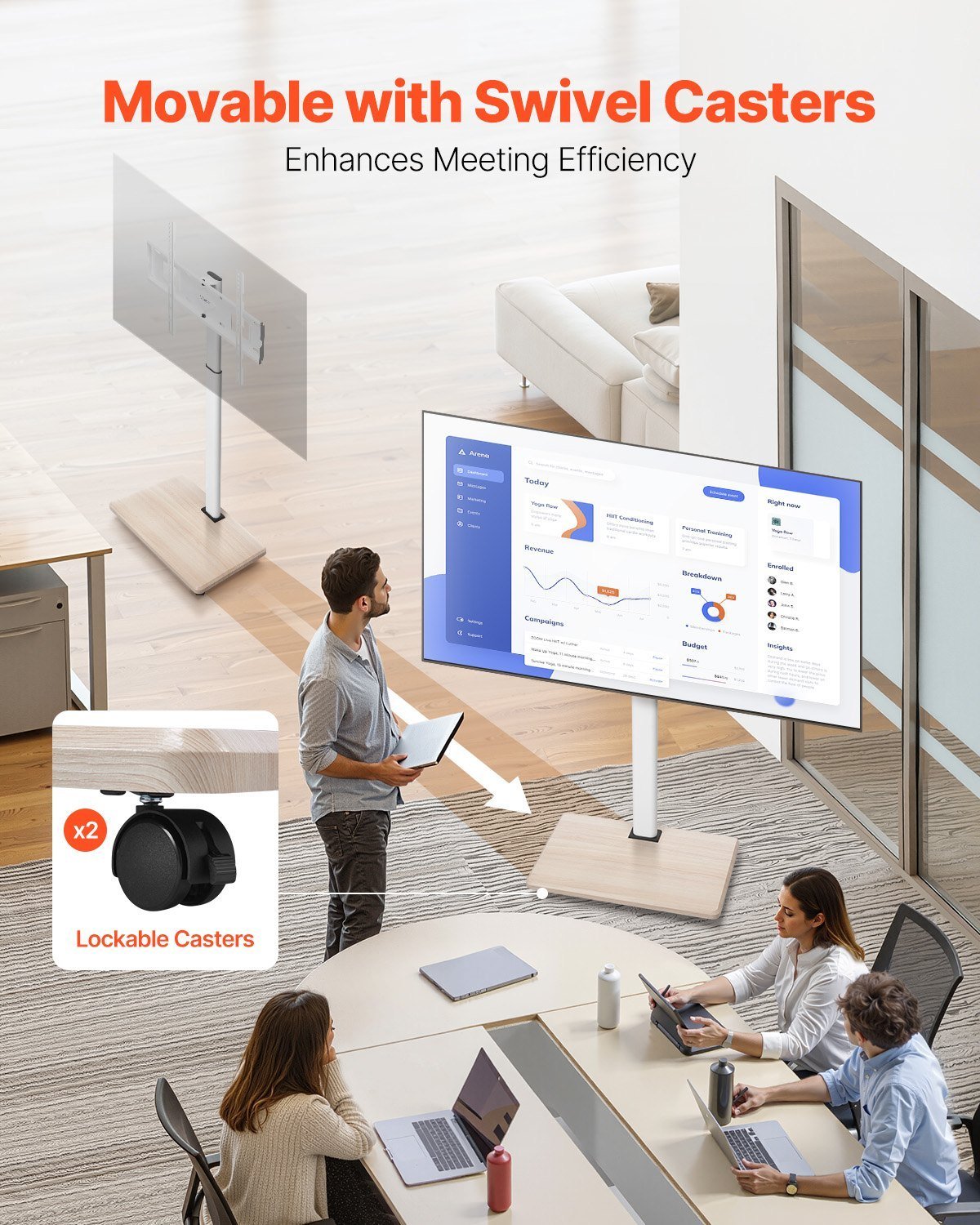 Flexible Adjustability: This movable TV stand provides height adjustment options, allowing you to easily set the TV at the ideal height based on your room layout and viewing needs. The ±25° left-right rotation feature lets you rotate the TV freely for an ideal all-around viewing experience.