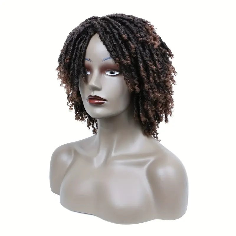 Elevate your style with this short hair braided non-toxic African curly wig. This synthetic wig is designed to provide a natural look while ensuring safety and comfort.