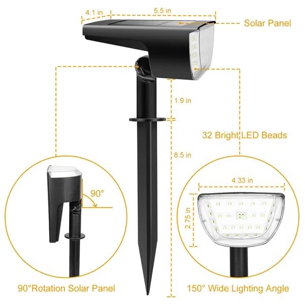 Solarek 32 LEDs Solar Landscape Spotlights IP65 Waterproof Solar Lights Auto On Off Solar Powered Security Wall Lights