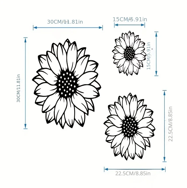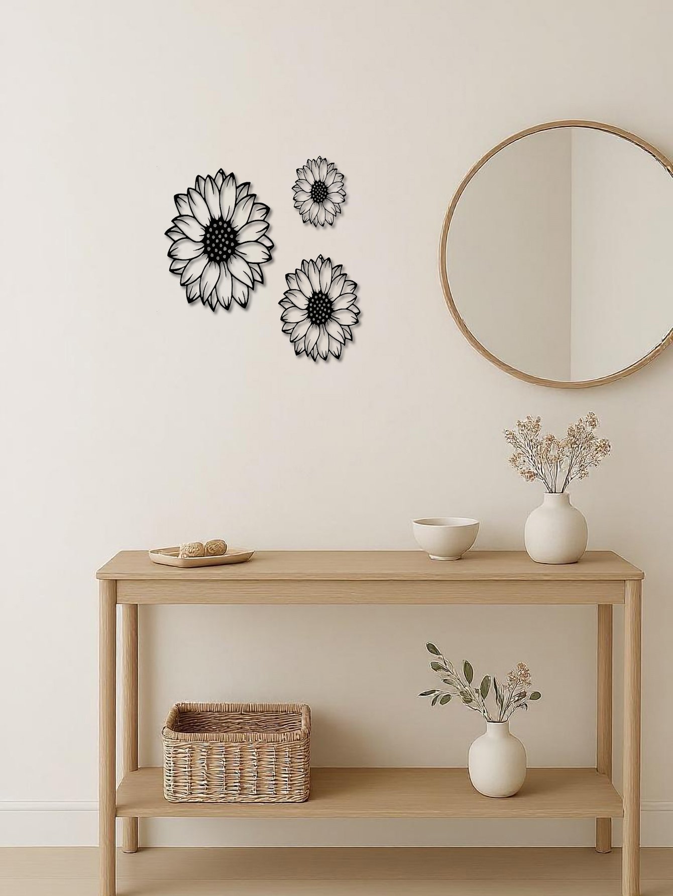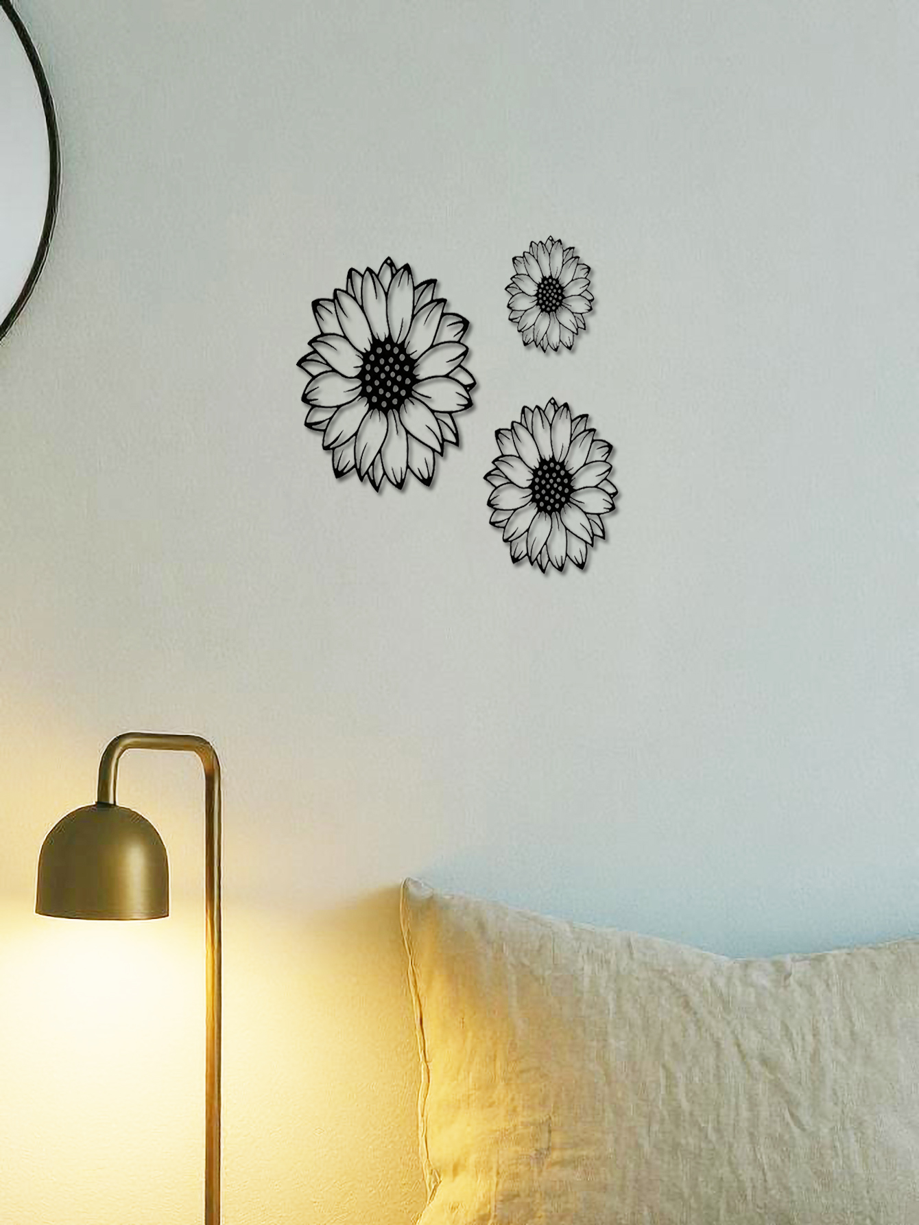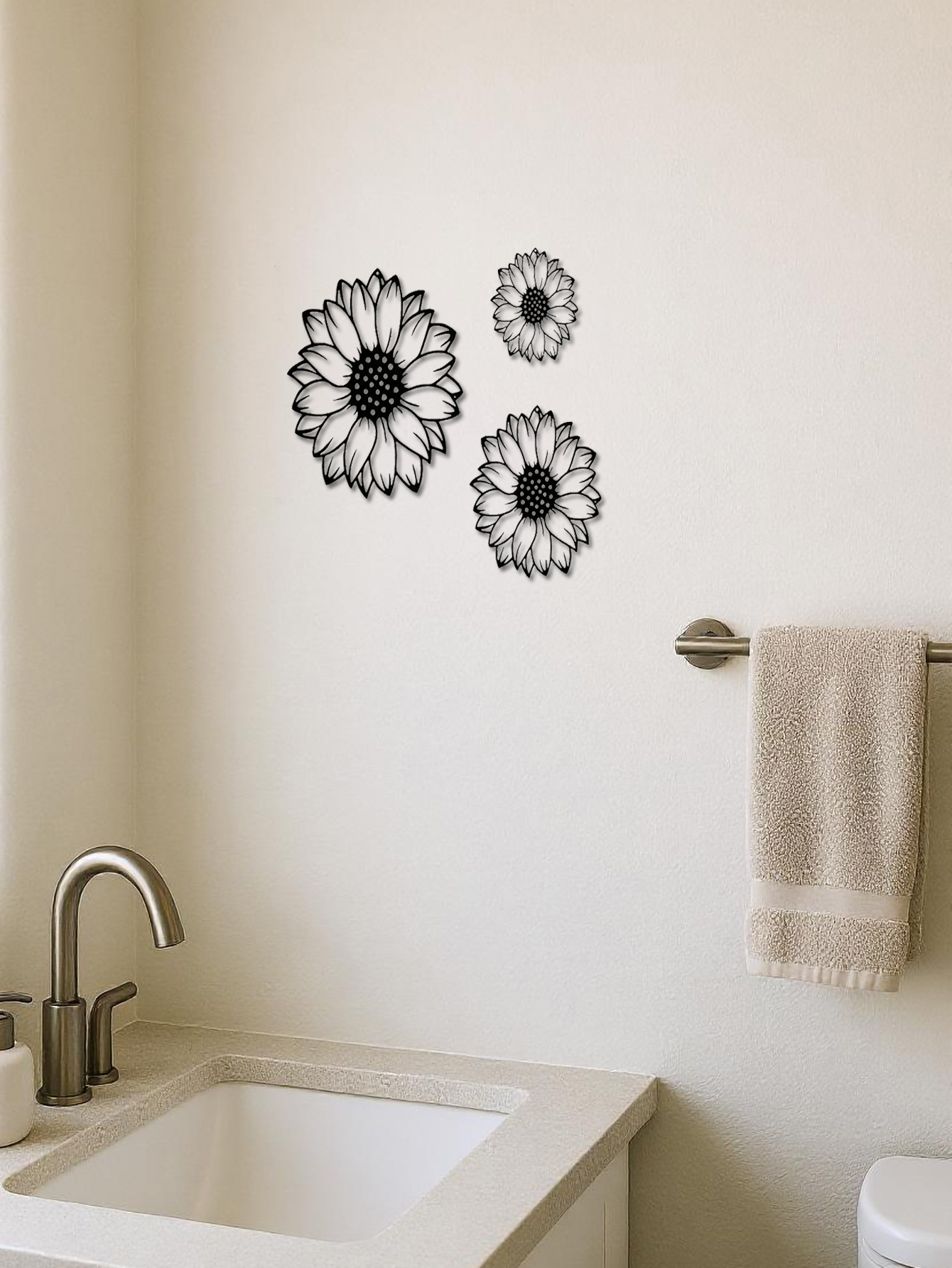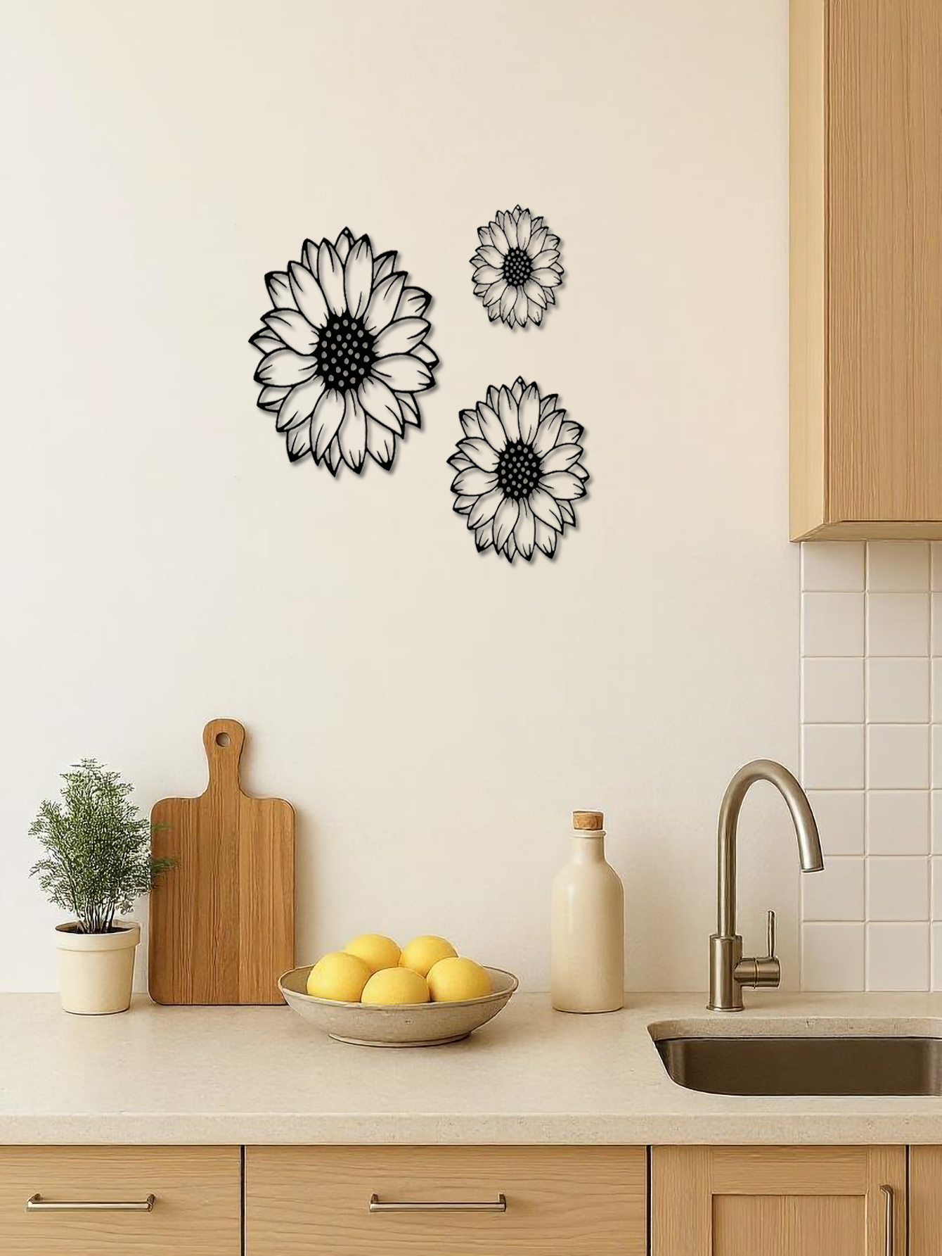 Sunflower Silhouette Pendants Set of 3 Stunning Elegant Metal Wall Art for Home Decoration Perfect for Bedroom Wall Decor Living Room Dining Room Indoor Stylish Hanging Ornaments Wall Sculptures
