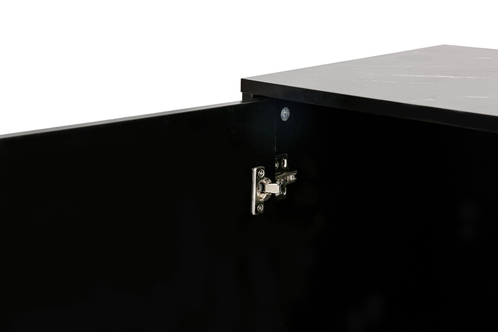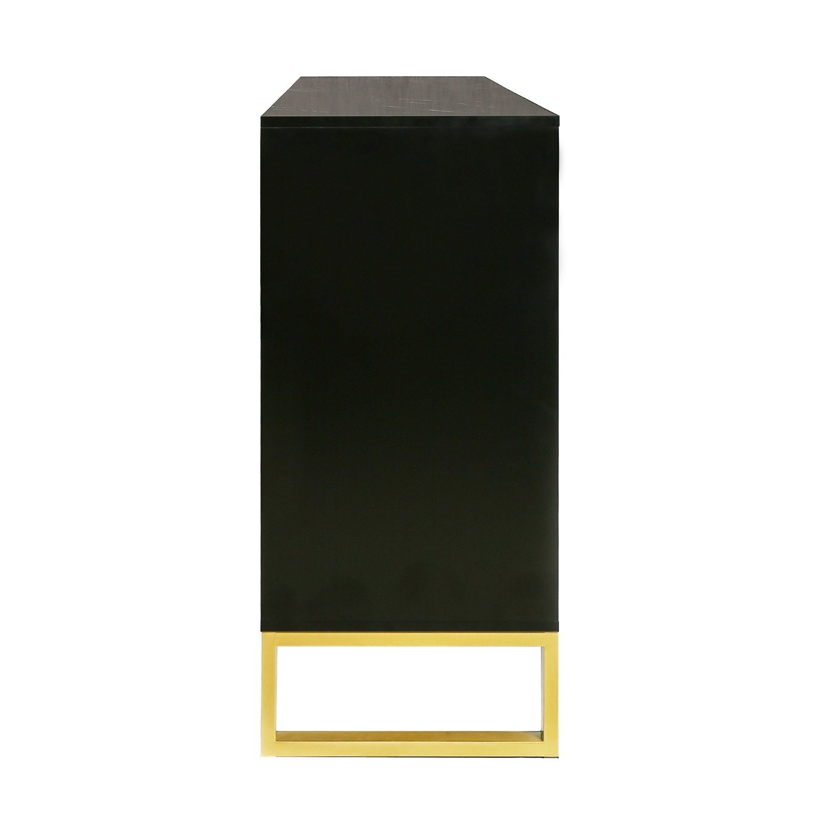 The design of this cabinet combines the features of modern simplicity and light luxury. Tabletop covered with marble sticker and the pinstripe design on the door panel are elegant and understated, and the gold metal legs reflect the texture, in line with the characteristics of the light luxury style. The high-quality particle board and MDF used in the construction of this sideboard ensures its sturdiness and stability. The load-bearing capacity of the top panel is 70lbs.