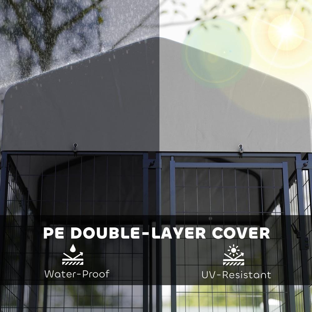Welded Wire Outdoor Dog Kennel With 360 Rotating & 4 Levels Adjustable Bowls, Waterproof Cover, 3.9 X 3.9 X 6