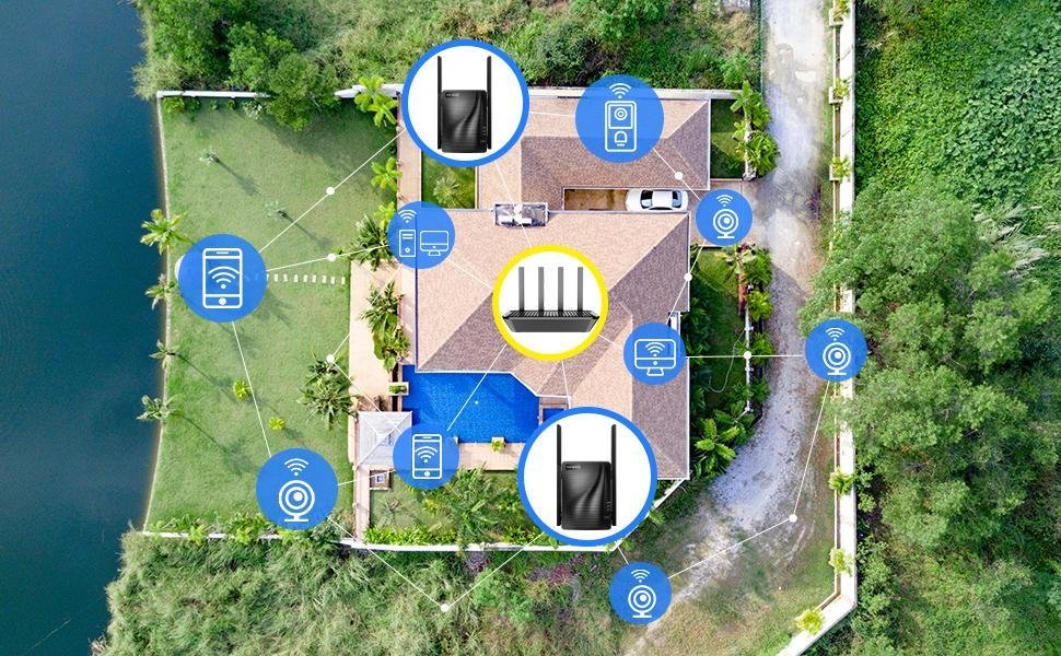 xtend Wifi Coverage on Dual-band. Boost internet WiFi signal to wider coverage up to 1292 sq.ft,optimize WiFi network transmission. AC2100 Wifi Extender helps you reduce the data transmission time and minimize the lag. This rockspace dual band wifi range extender also provides up to 300 Mbps for 2.4 GHz and 1734 Mbps performance on 5 GHz band. Wifi range extender – no more WiFi dead zones at home