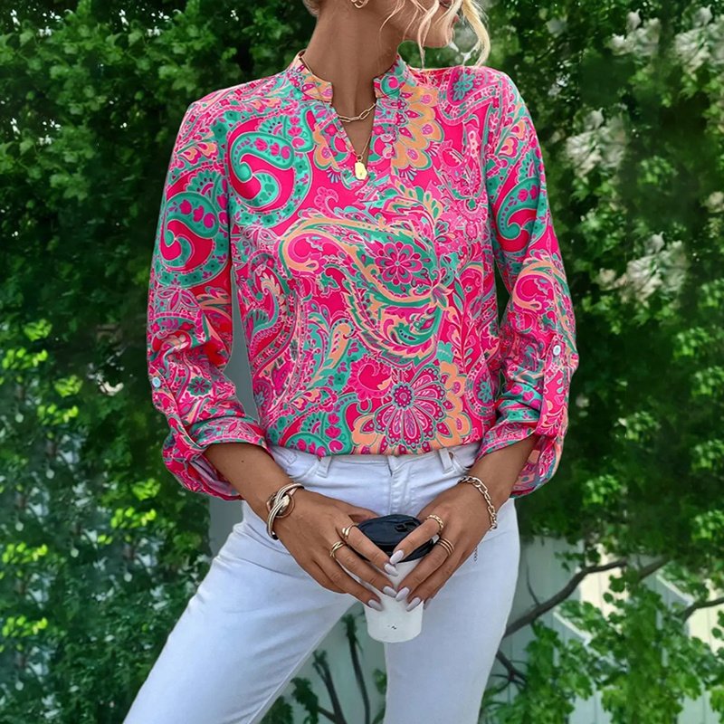 Elevate your professional wardrobe with this V-neck blouse that seamlessly transitions from office to evening! Designed for modern working women, this long sleeve business top combines polished sophistication with summer-ready comfort . The breathable fabric keeps you cool while the V-neck create a flawless silhouette.