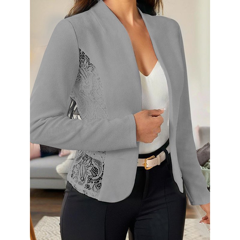Add a touch of feminine sophistication to your workwear with this Lace Contrast Cardigan Jacket – where professional polish meets delicate romance . This unique open-front blazer features contrast lace panels at side , creating a stylish office-to-evening transition piece that stands out in any business casual setting.