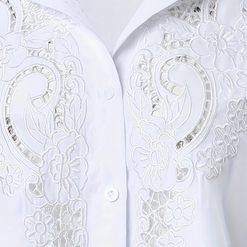 Elevate your autumn wardrobe with this  feminine lace-trimmed blouse , where  delicate contrast lace  meets  polished button-down  styling. Perfect for transitioning from office to evening, this  versatile long sleeve top  features: