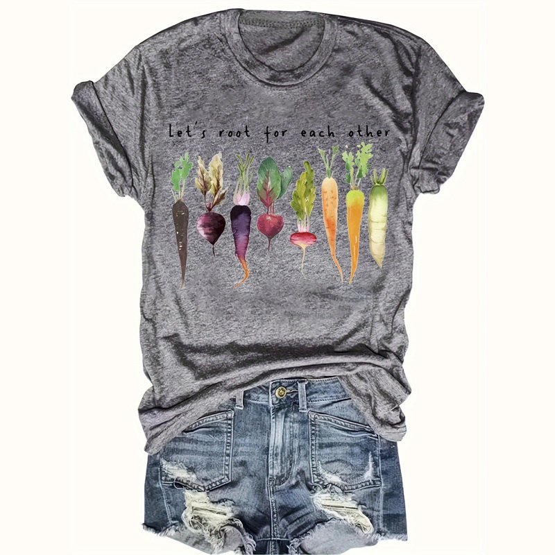 Women’s Fun Radish Print Short Sleeve T-Shirt – Comfortable Round Neck Casual Summer Tee
