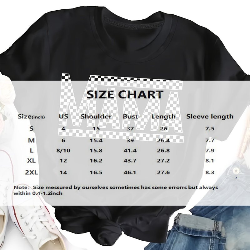 Be the first to review “Women’s Plaid Mama Letter Print T-Shirt, Casual Crew Neck Short Sleeve Top For Spring & Summer”