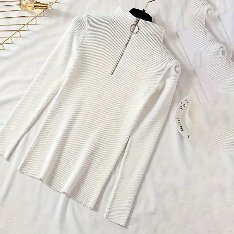 Experience refined comfort with our Women’s Slim Fit Half-Zip Turtleneck Sweater, expertly designed for versatile cold-weather wear. This elegant knit top combines a contemporary half-zip design with a cozy fold-over turtleneck , creating adjustable coverage perfect for layering or wearing alone. Its streamlined silhouette and stretchy fabric make it ideal for both professional environments and casual settings, offering warmth without bulk during autumn and winter months.