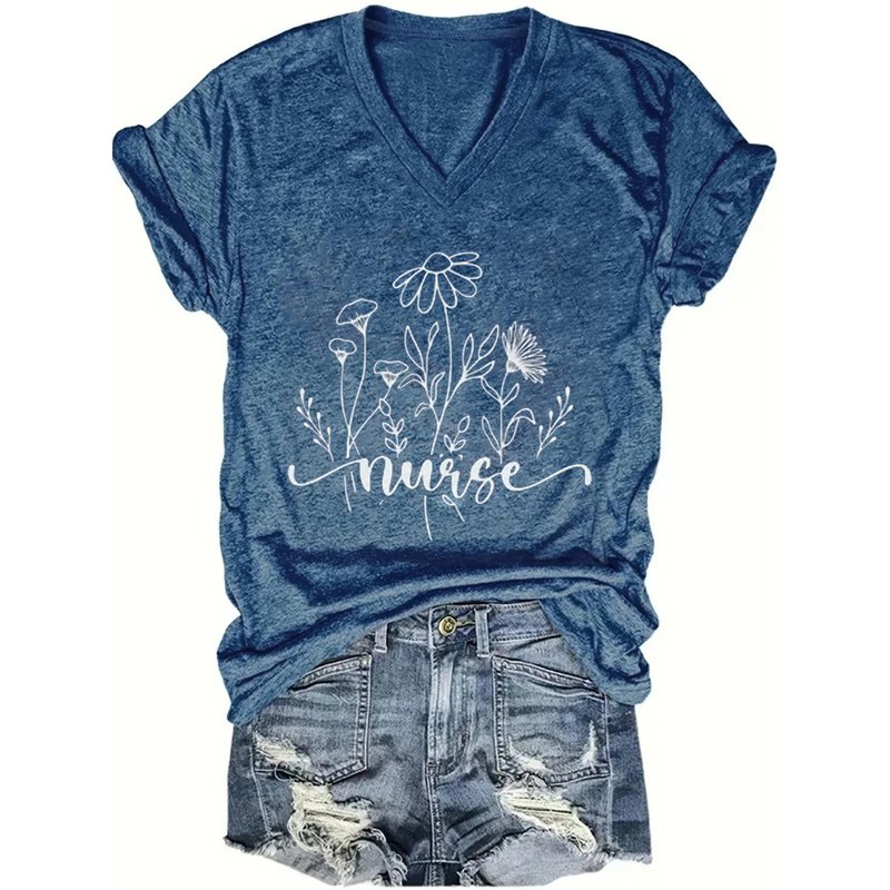 Enhance your casual style with this women’s v-neck floral print t-shirt , featuring a beautiful flower pattern that brings fresh vibes to your summer wardrobe.