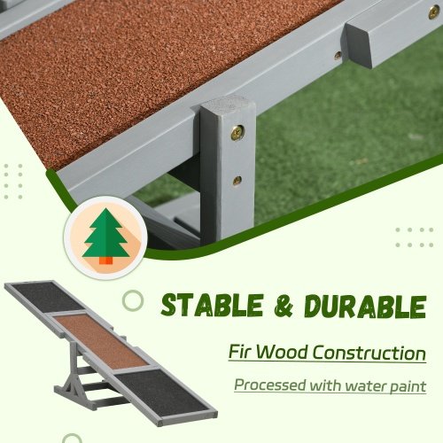 PawHut Wooden Dog Agility Seesaw for Training & Exercise, Platform Equipment Running Play Toy, Weathering Pet Supplies, 71″ L x 12″ W x 12″ H, Gray